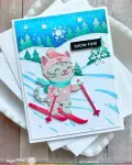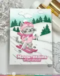 This set includes a cat with winter accessories and skis. Cut the pieces from cardstock and use the stencil to add shadows and details. The dies are numbered for easy assembly.